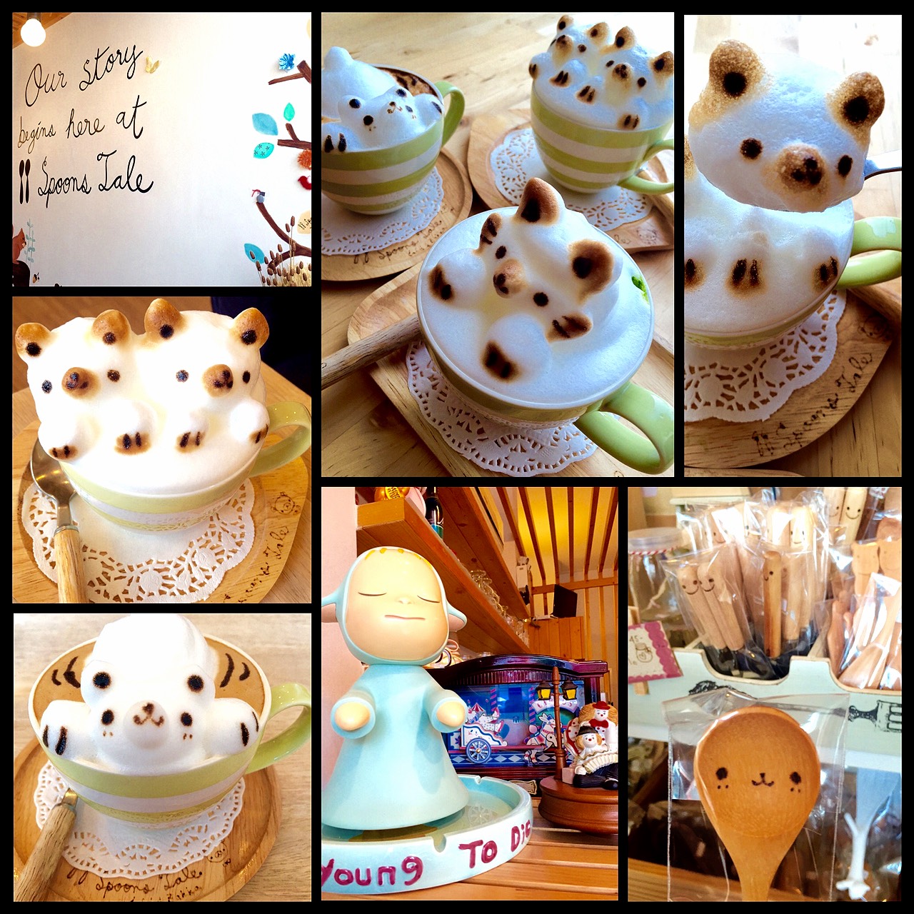 Two Spoons Tale ค่าเฟ่น่ารักๆ สไตล์ญี่ปุ่น ตกแต่งด้วยต้นกระบองเพชรเรียงราย แถมมึมุมขายของกระจุกกระจิกให้ติดไม้ติดมือกลับบ้านไปด้วยกัน ที่โดดเด่นยิ่งกว่านั้นคือเจ้าเครื่องดื่ม 3D Latte Art ที่ใช้ฟองนมมาทำเป็นตัวการ์ตูนนูนเด่นขึ้นมานี่เอง